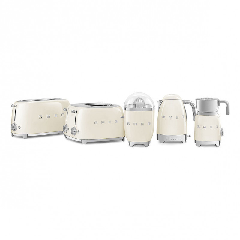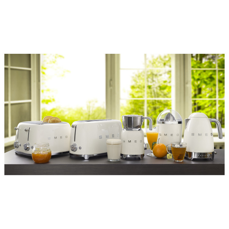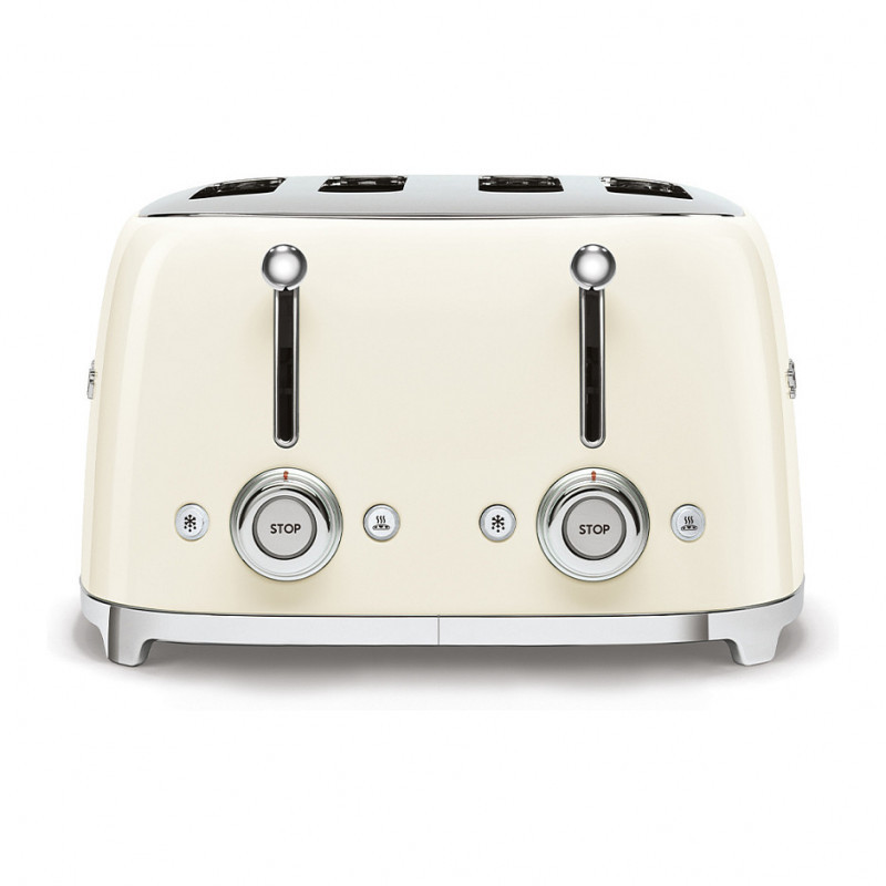 "Smeg 50's Style Toaster TSF03CREU Cream. Number of slices: 4 slice(s), Product colour: Cream, Housing material: Stainless steel. Power: 2000 W, AC input voltage: 220-240 V, AC input frequency: 50-60 Hz. Cord length: 1 m, Width: 330 mm, Depth: 300 mm. Country of origin: China. Products per intermodal container (20ft): 720 pc(s), Products per intermodal container (40ft): 1536 pc(s), Products per intermodal container (40ft, HC): 1728 pc(s)"\n"Smeg's iconic retro design offers a pop of colour and a premium enamelled finish. Whether your preparing fragrant, buttery croissants for two, or a family sized breakfast before the school run, the Smeg TSF03 4 slot toaster has got it covered. This toaster allows up to 4 slices to be cooked at the same time making it ideal for large families, or those who like the start the day with a hearty breakfast for plenty of energy!