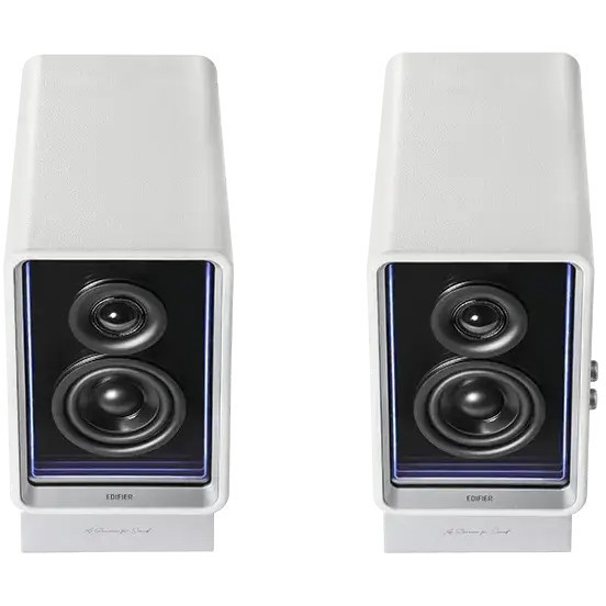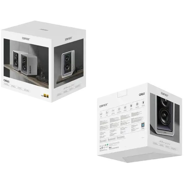 "Edifier QR65. Recommended usage: PC. Number of drivers: 1. Connectivity technology: Wired & Wireless. RMS rated power: 70 W, Frequency range: 55 - 40000 Hz. Product colour: White"\n"Desktop Active Monitor with GaN Charger