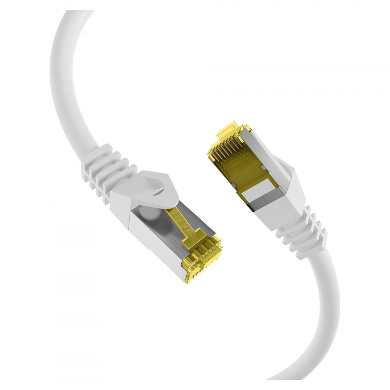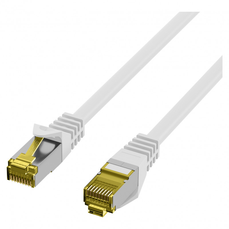 "EFB Elektronik RJ45 Patch Cord Cat.6A S/FTP Cat.7 raw cable white. Cable length: 0.15 m, Cable standard: Cat6a, Cable shielding: S/FTP (S-STP), Connector 1: RJ-45, Connector 2: RJ-45, Connector contacts plating: Gold, Data transfer rate: 10000 Mbit/s, Product colour: White"\n"The Cat.6A (TIA) patch cable meets the requirements for 10Gbit Ethernet and has gold-plated contacts.