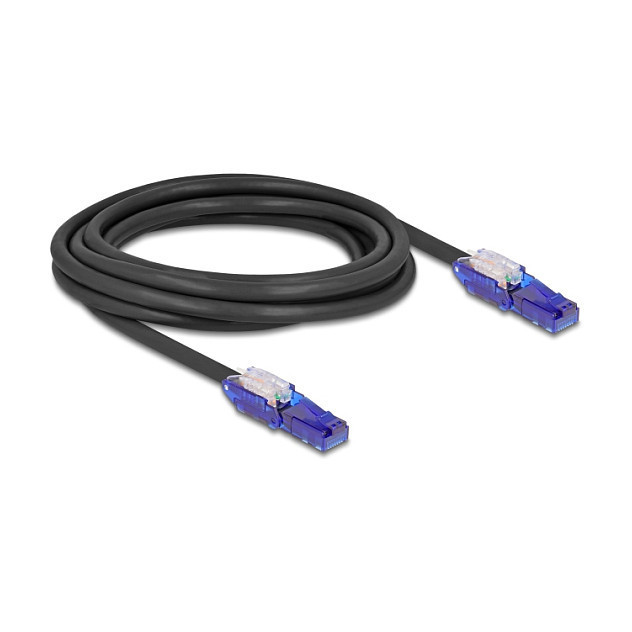 "M-Cab EC020200234. Cable length: 0.5 m, Cable standard: Cat8.1, Cable shielding: S/FTP (S-STP), Connector 1: RJ-45, Connector 2: RJ-45, Connector contacts plating: Gold, Data transfer rate: 40000 Mbit/s, Product colour: Blue"\n