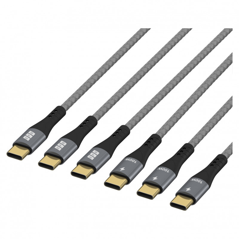 "EFB Elektronik USB-CC-00007. Connector 1: USB C, Connector 2: USB C, USB version: USB 2.0, Maximum data transfer rate: 0.48 Gbit/s, Connector contacts plating: Gold, Product colour: Black, Grey"\n"USB Type-C to USB Type-C Charging Cable Set – 100W, E-Marker, Textile Braid, 1 x 0.5m / 1m / 2m