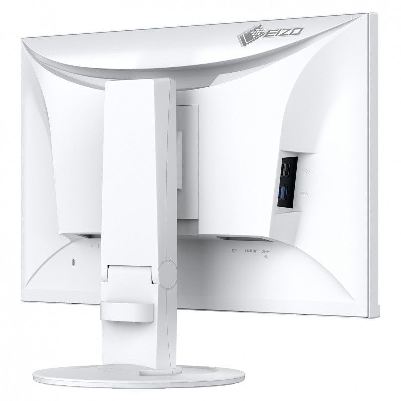 "EIZO FlexScan EV2400R-WT. Display diagonal: 60.5 cm (23.8""), Display resolution: 1920 x 1080 pixels, HD type: Full HD, Display technology: LCD, Response time: 5 ms, Native aspect ratio: 16:9, Viewing angle, horizontal: 178°, Viewing angle, vertical: 178°. Built-in speaker(s). Built-in USB hub, USB hub version: 2.0 / 3.2 Gen 1 (3.1 Gen 1). VESA mounting, Height adjustment. Product colour: White"\n"The 23.8-inch EV2400R monitor is specially designed for energy-efficient use in everyday office life and meets both important sustainability requirements and basic workplace needs. It combines the popular 16:9 screen format with advanced energysaving features and typically consumes only 8 watts, which reduces the CO2 footprint and energy costs. Its special Eco Mode activates the Auto EcoView and EcoView Optimizer functions to automatically adjust screen brightness to ambient light and image content, reducing power consumption by up to 60%. The EV2400R is also certified to global sustainability standards and its housing is made from over 50% recycled plastic. With up to 350 cd/m² brightness and 1500:1 contrast, the monitor offers clear image reproduction. It also features eye-friendly features such as anti-glare and flicker-free display. With a 100 Hz refresh rate, moving image content is displayed smoothly. DisplayPort and HDMI inputs, 4 USB downstream ports, and a versatile, ergonomic stand make the EV2400R fully office-ready.