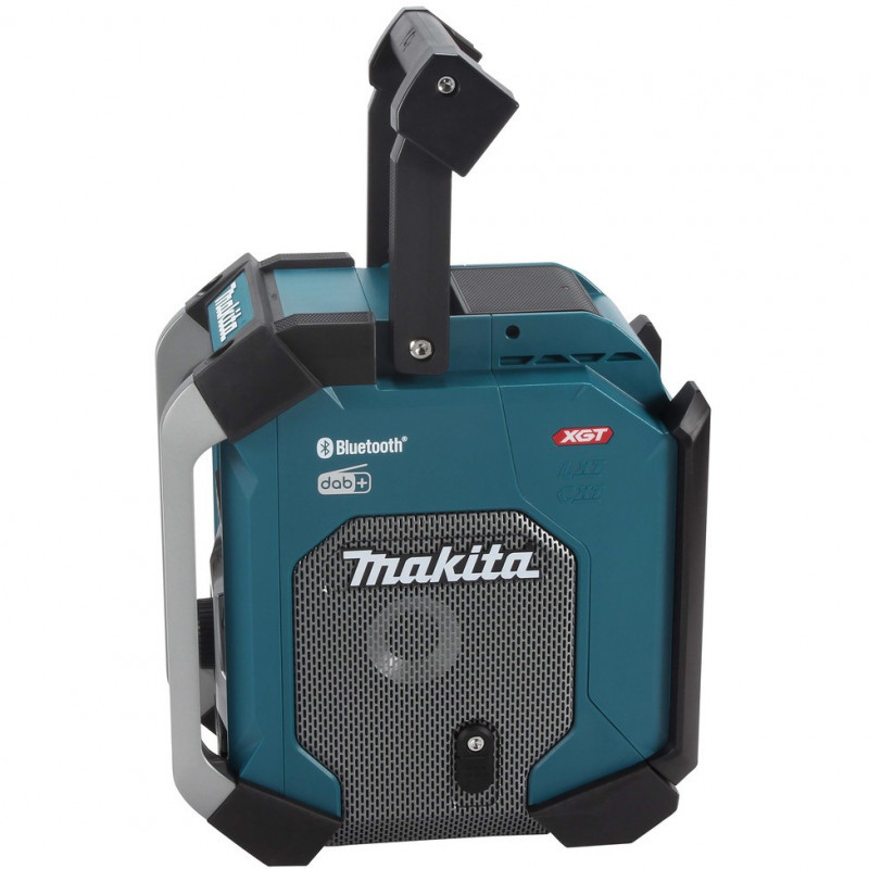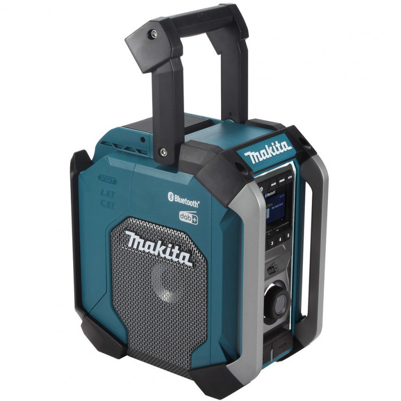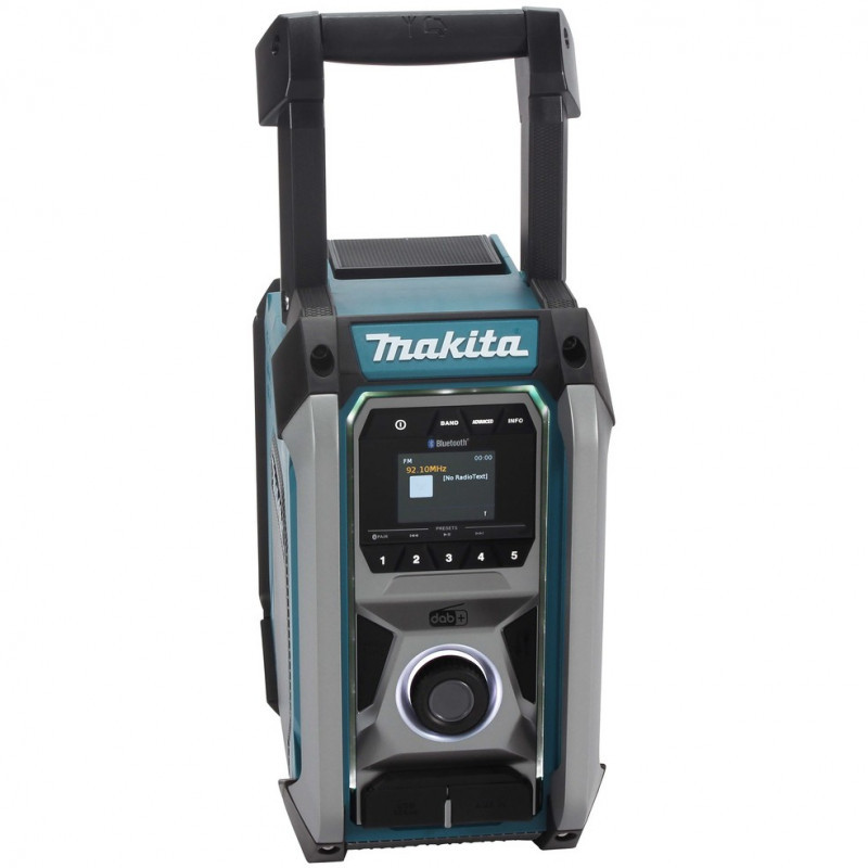 "Makita MR007GZ. Radio type: Worksite, Tuner type: Analog & digital, Supported radio bands: DAB+, FM. Display type: LCD, Backlight colour: Blue. Product colour: Black, Green, Coloration: Monochromatic, Protection features: Overheating protection, Overload protection, Water repellent. Battery technology: Lithium-Ion (Li-Ion). Power source: Battery"\n"MR007G The subwoofer on the bottom & the midrange/treble speakers on both sides provide deeper & richer high quality sound to suit various music genres.MY EQ (my equalizer) mode enables to independently adjust treble, midrange and bass for a desired sound quality.DAB/DAB+ (Digital Audio Broadcasting)"
