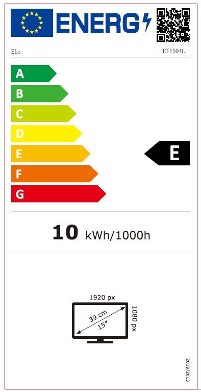 "Elo Touch Solutions 1504L. Display diagonal: 39.6 cm (15.6""), Display resolution: 1920 x 1080 pixels, HD type: Full HD. Product colour: Black, Mean time between failures (MTBF): 50000 h. Power source type: DC, USB, Power: 12.1 W, AC adapter input voltage: 90 - 264 V. Width: 371 mm, Depth: 26.9 mm, Height: 227.5 mm. Package width: 451 mm, Package depth: 220 mm, Package height: 342 mm"\n"1504L 15-inch Touchscreen Monitor
