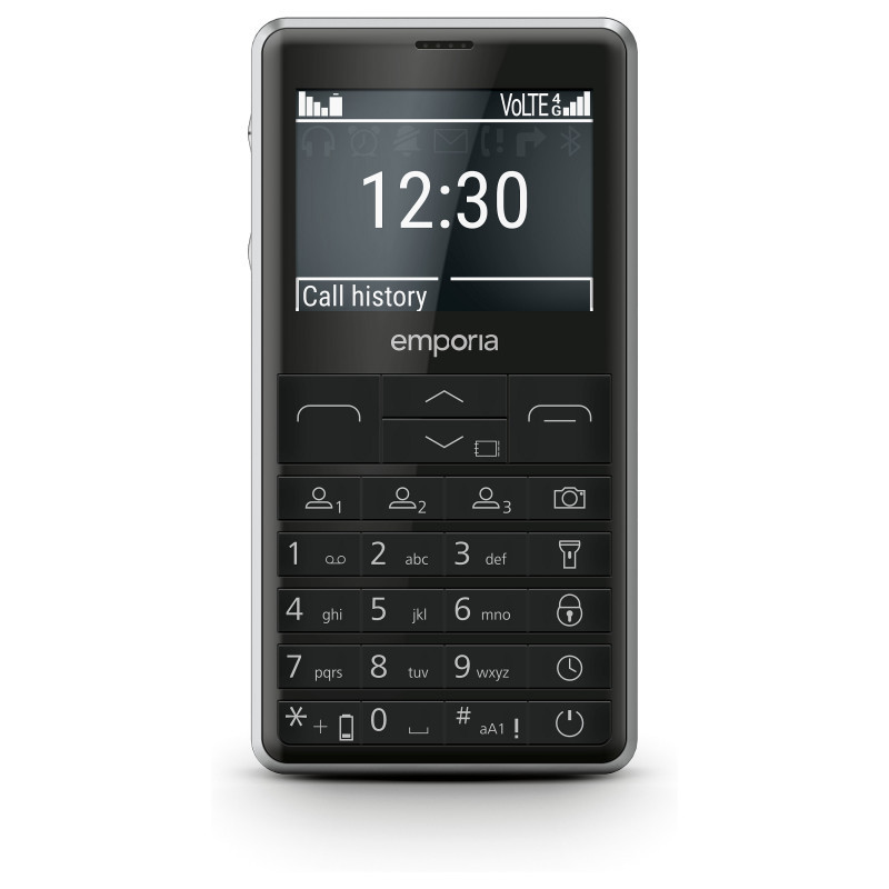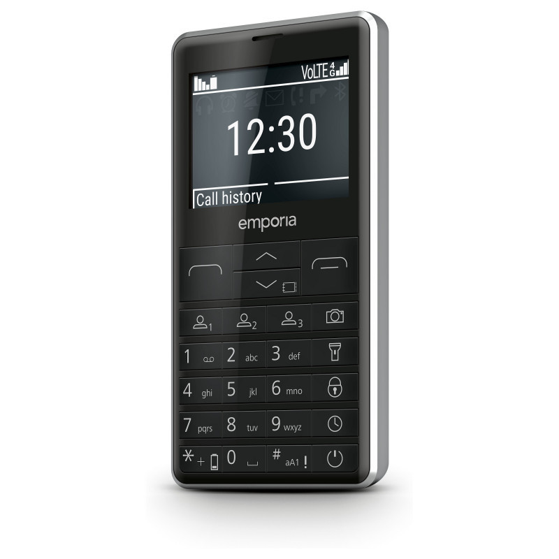 "Emporia emporiaPRIME-LTE. Form factor: Bar. SIM card capability: Single SIM. Display diagonal: 5.87 cm (2.31""), Display resolution: 320 x 240 pixels. Rear camera resolution (numeric): 2 MP. Bluetooth. Battery technology: Lithium-Ion (Li-Ion), Battery capacity: 1400 mAh. Weight: 107 g. Product colour: Black"\n