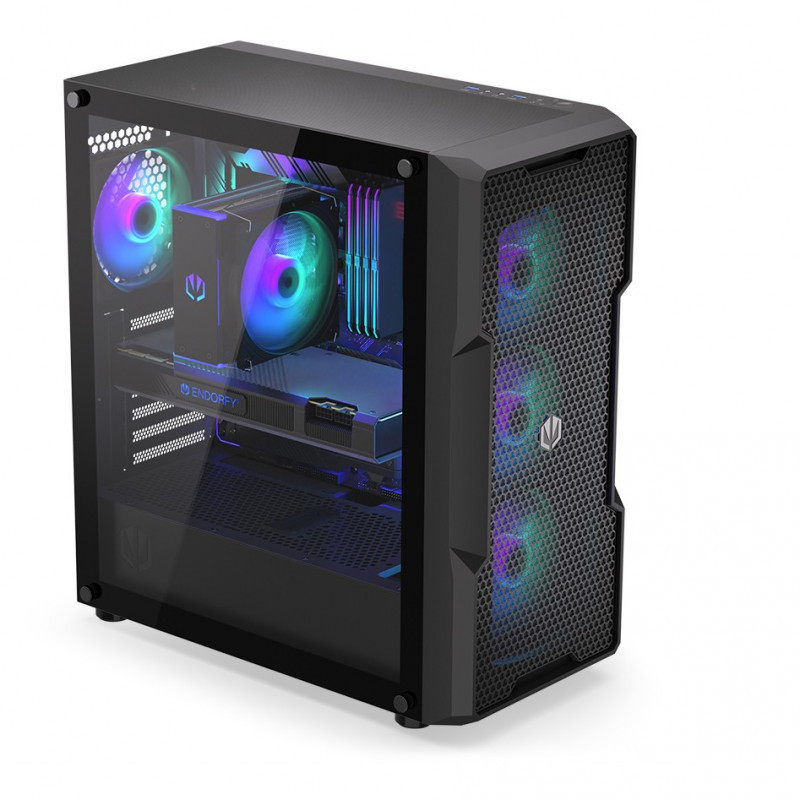 "ENDORFY Regnum 400 ARGB. Form factor: Tower, Type: PC, Product colour: Black. Front fans installed: 3x 120 mm, Rear fans installed: 1x 120 mm, Front radiator sizes supported: 240,360,120,280 mm. Supported HDD sizes: 2.5,3.5"". Width: 472 mm, Depth: 220 mm, Height: 442 mm"\n"The Regnum 400 ARGB can easily fit everything you need for work (and more), all while further enhancing your meticulously built battle station with its ARGB glory.