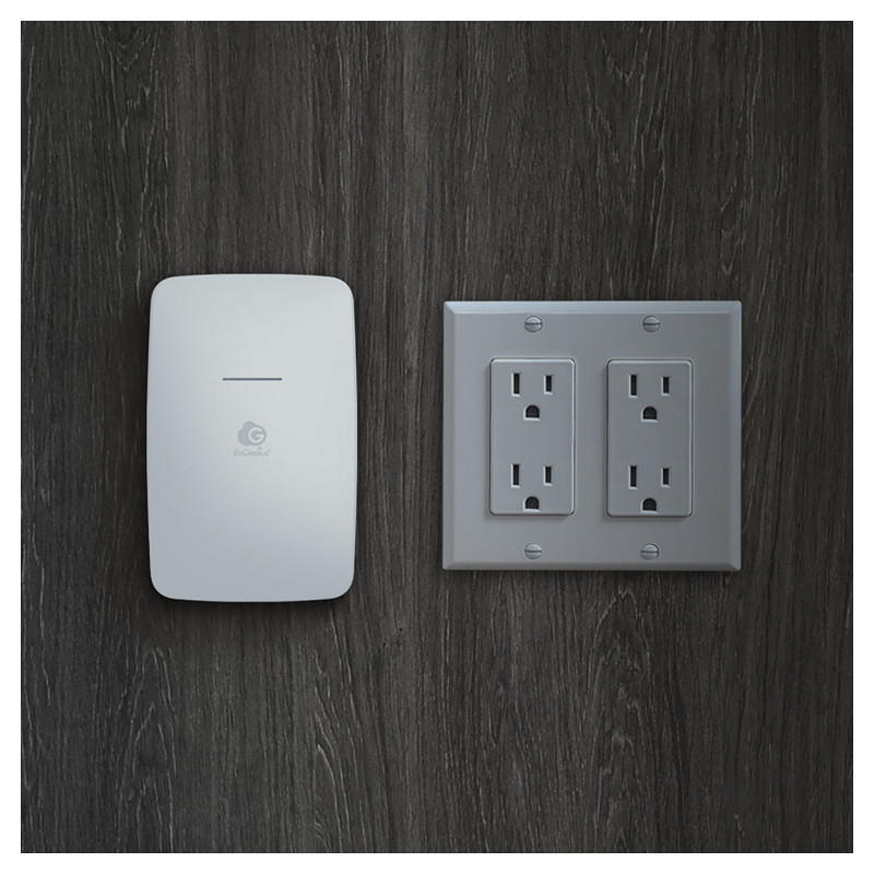 "EnGenius Cloud Managed AP Wall-Plate 11ax Wi-Fi6 400+867Mbps 2T2R GbE PoE.af 2x4 & 2x 5dBi ia. 2.4 GHz, 5 GHz, Maximum data transfer rate: 1200 Mbit/s. Security algorithms: WPA2-Enterprise, WPA2-PSK, WPA3-Enterprise, WPA3-PSK. Ethernet LAN data rates: 10,100,1000 Mbit/s. Power over Ethernet (PoE). Product colour: White. Power consumption (max): 14.2 W"\n"EnGenius Cloud Managed Wi-Fi 6 Wall-Plate Access Point ECW215 delivers throughput speeds up to 1,200 Mbps (5 GHz) & 574 Mbps (2.4 GHz), and equips with 2 GE-port supporting 802.3af/at PoE-in. Featuring remote management, Gigabit Ethernet PoE port, 12/48V DC input, quick-scan device registration, and EnGenius Cloud App for unlimited AP management. Mesh Wireless Support streamlines setup and optimizes signal quality.