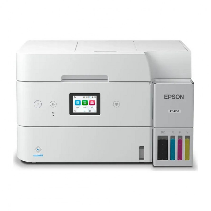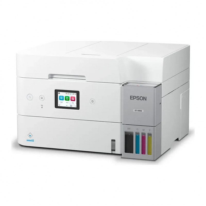 "Epson EcoTank ET-4956. Print technology: Inkjet, Printing: Colour printing, Maximum resolution: 4800 x 1200 DPI, Print speed (colour, normal quality, A4/US Letter): 23 ppm. Scanning: Colour scanning, Optical scanning resolution: 1200 x 2400 DPI. Faxing: Colour faxing. Duplex functions: Print. Maximum ISO A-series paper size: A4. Wi-Fi. Direct printing. Product colour: Black"\n