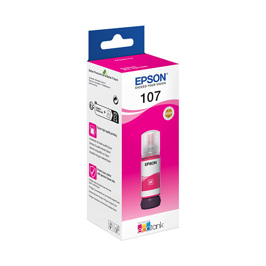 "Epson 107. Type: Original, Printing colours: Magenta, Brand compatibility: Epson. Quantity per pack: 1 pc(s), Package width: 57 mm, Package depth: 57 mm. Products per pallet: 1890 pc(s), Pallet gross length: 120 cm, Pallet gross width: 100 cm"\n"High-quality photo printing