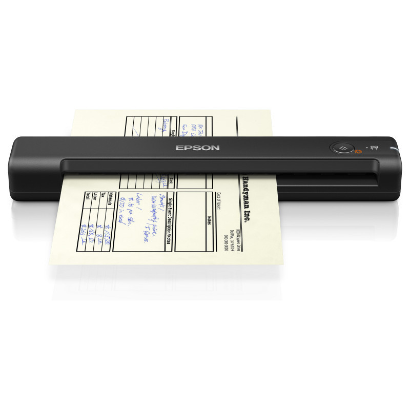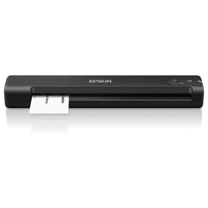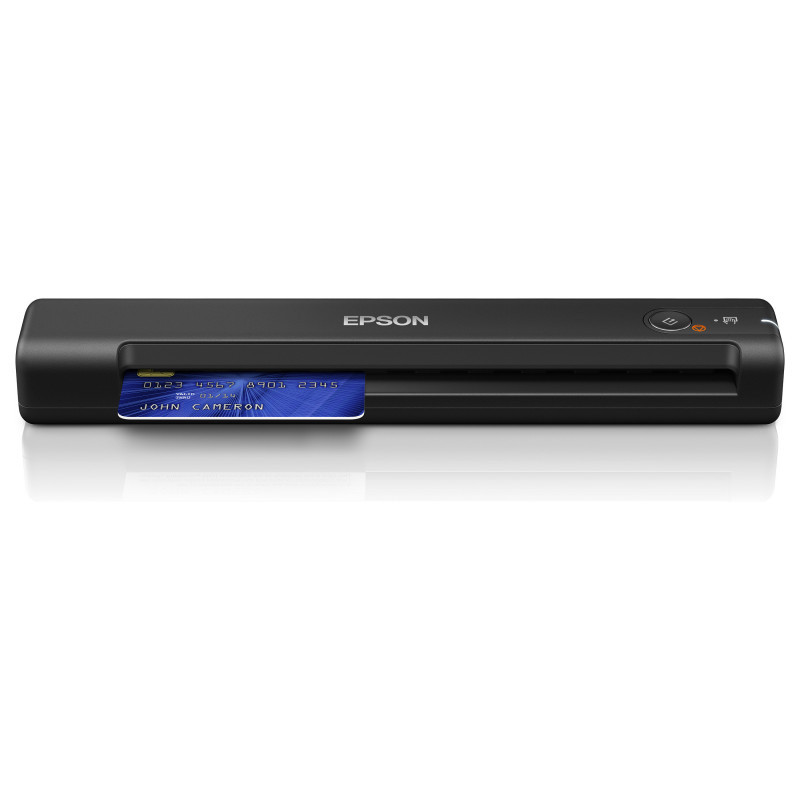 "Epson WorkForce ES-50. Optical scanning resolution: 600 x 600 DPI, Input colour depth: 48 bit, Output colour depth: 24 bit. Scanner type: Handheld scanner, Product colour: Black. Sensor type: CIS, Daily duty cycle (max): 300 pages, Scan drivers: WIA, SANE, ICA. Auto document feeder (ADF) input capacity: 1 sheets. Maximum ISO A-series paper size: A4, Scanning media types supported: Business Card, Plastic Card, Post Card(JPN), ISO A-series sizes (A0...A9): A4, A5, A6, A7, A8"\n"Scan anywhere