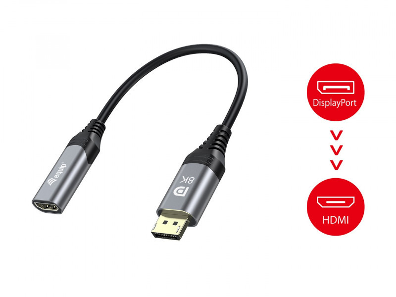 Equip 133446 vaizdo kabelio adapteris 0,15 m DisplayPort HDMI Juoda, Pilka