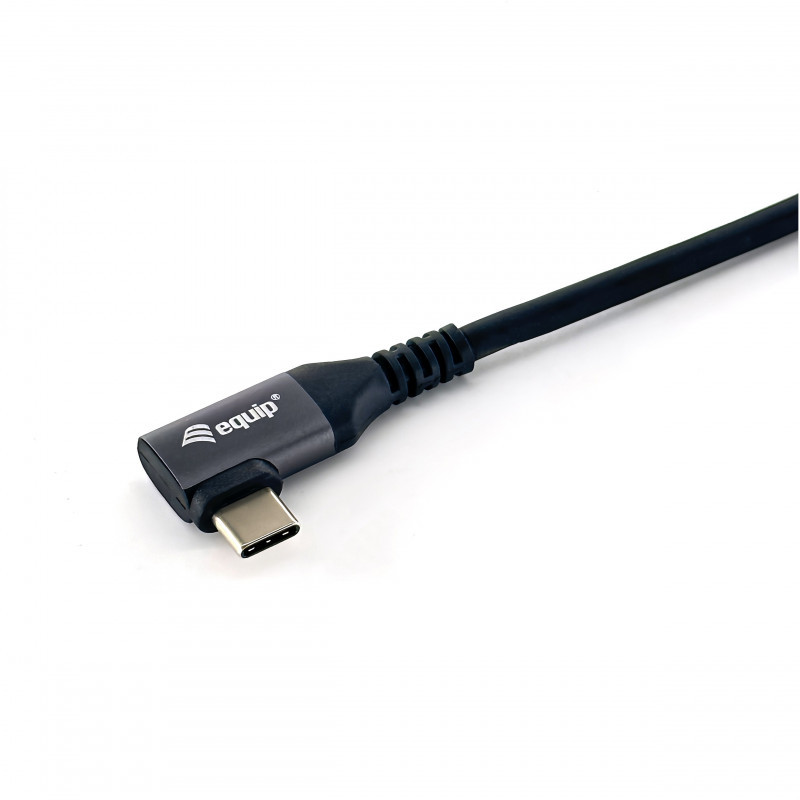 "Equip USB 2.0 C to C 90° angled Cable, M/M, 1.0m, 100W with Emark chispet. Cable length: 1 m. Connector 1: USB C, Connector 2: USB C, USB version: USB 2.0, Maximum data transfer rate: 0.48 Gbit/s, Product colour: Black, Magnetically shielded"\n"The Equip 128891 USB-C to C 90° angled cable with Emark chipset is a versatile and efficient solution for connecting and charging USB-C devices. With 90° angled design provides flexibility and convenience, especially in tight spaces or when using devices in landscape mode. This cable supports USB 2.0 data transfer speeds, offering reliable connectivity for peripherals like keyboards, mice, and external storage devices.