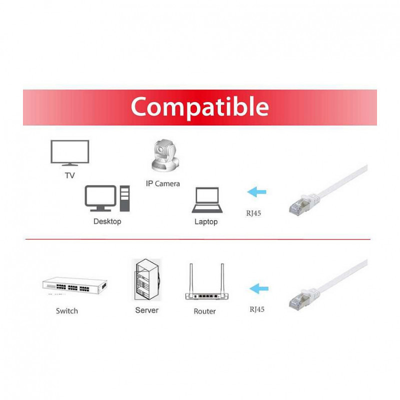 "Equip Cat.6A U/FTP Flat Patch Cable, 0.5m, White. Cable length: 0.5 m, Cable standard: Cat6a, Cable shielding: U/FTP (STP), Connector 1: RJ-45, Connector 2: RJ-45, Connector contacts plating: Gold, Data transfer rate: 10000 Mbit/s, Product colour: White"\n"The equip® Cat.6A U/FTP Patch Cord is composed of preeminent materials and fully-examined to fulfill the 10G application. The flat form factor is ideal for saving space and thus more convenient for cabling deployment, avoiding the cumbersome installation."