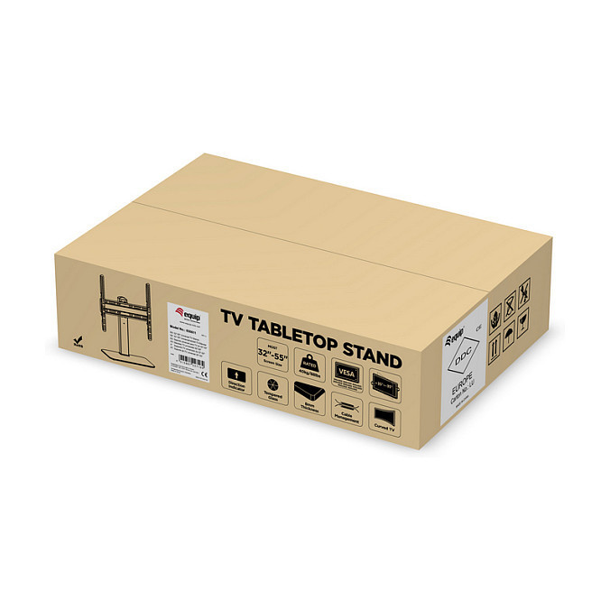 "Equip 32""-55"" Universal TV Stands. Maximum weight capacity: 40 kg, Minimum screen size: 81.3 cm (32""), Maximum screen size: 139.7 cm (55""), Minimum VESA mount: 100 x 200 mm, Maximum VESA mount: 400 x 400 mm. Height adjustment range: 260 - 450 mm. Product colour: Black"\n"""The equip® 650611 height adjustable TV/LCD Desk Mount Bracket is a compact but sturdy product that ensures a reliable installation of your TV monitor. No holes or complicated assembly required can be quick to assemble.