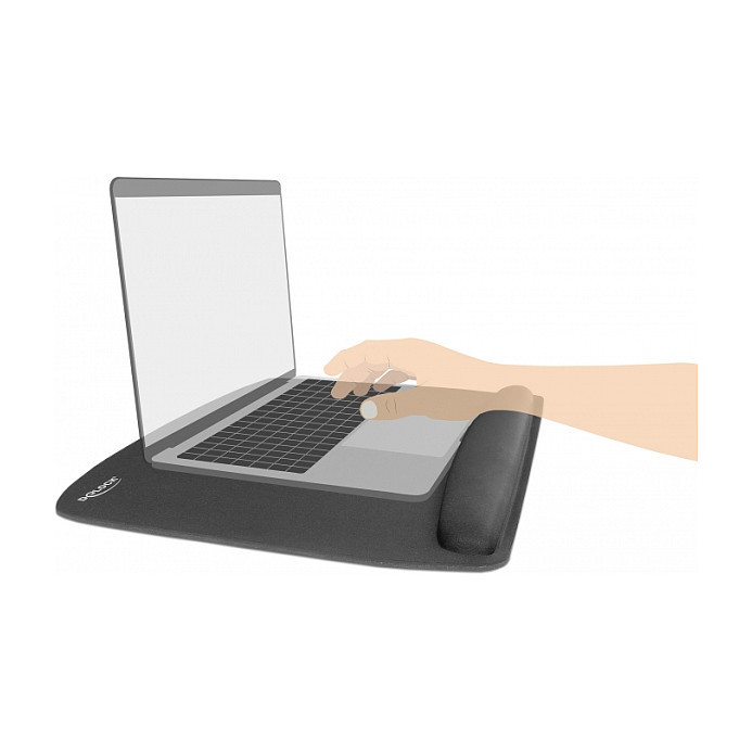 "DeLOCK 12601. Width: 420 mm, Depth: 320 mm. Product colour: Black, Surface coloration: Monochromatic, Material: Rubber, Wrist rest, Non-slip base"\n"This ergonomical designed soft mouse pad by Delock acts due to its wrist rest relieving when working with a mouse. With its smooth filling the ball of the hand lays comfortable on the mouse pad. Multifunctional application Furthermore this mouse pad can also be used as base for e.g. laptops, netbooks or tablets with extra keyboard, so that the wrist rest supports the ball of the hands while using the keyboard."