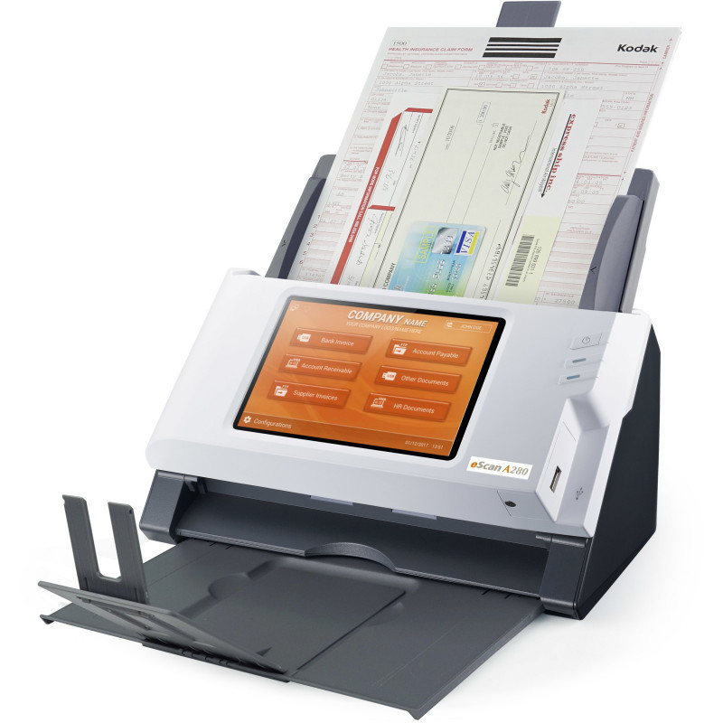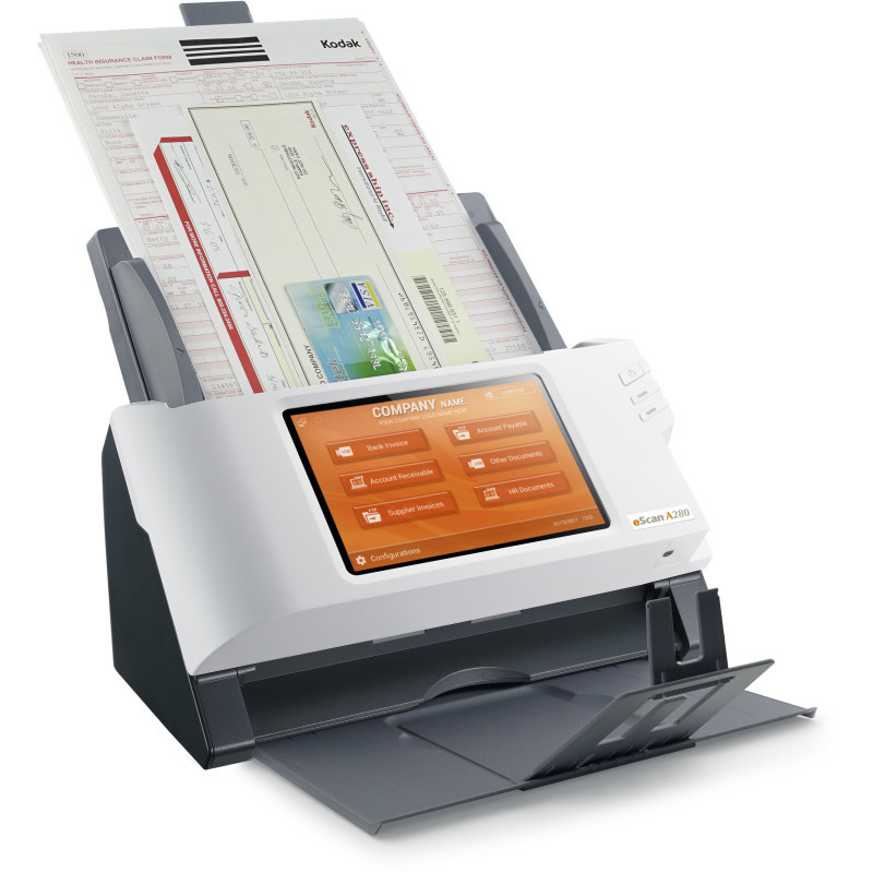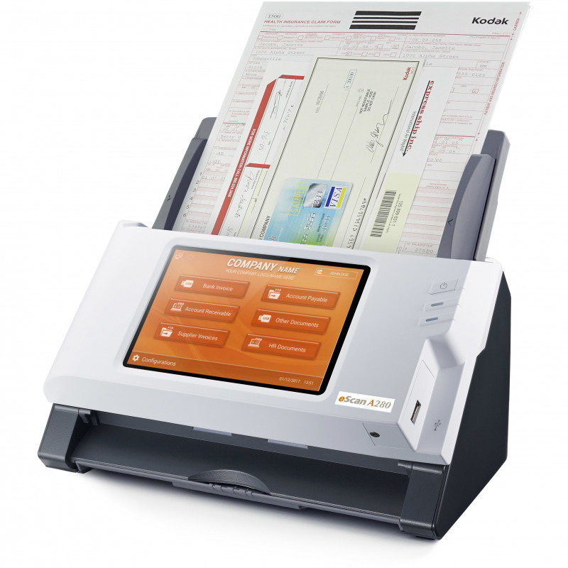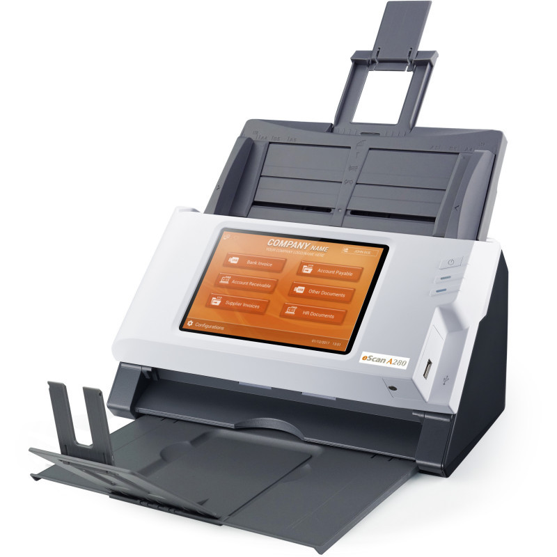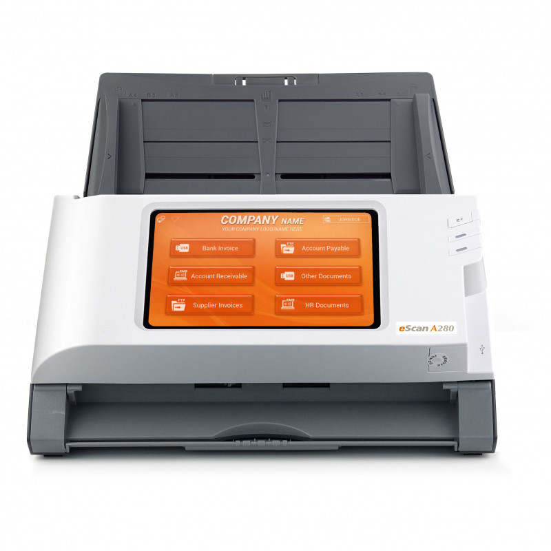 "Plustek eScan A280 Enterprise. Maximum scan size: 216 x 356 mm, Optical scanning resolution: 600 x 600 DPI, Scan speed (b/w, low res, A4): 20 sec/page. Scanner type: ADF scanner, Product colour: Black, White, Display: LED. Sensor type: Dual CIS, Daily duty cycle (max): 2000 pages, Scan to: E-mail, FTP, SMB, USB. Auto document feeder (ADF) input capacity: 50 sheets. Maximum ISO A-series paper size: A4, Auto Document Feeder (ADF) media weight: 40 - 157 g/m², Maximum scan area (ADF): 216 x 356 mm"\n