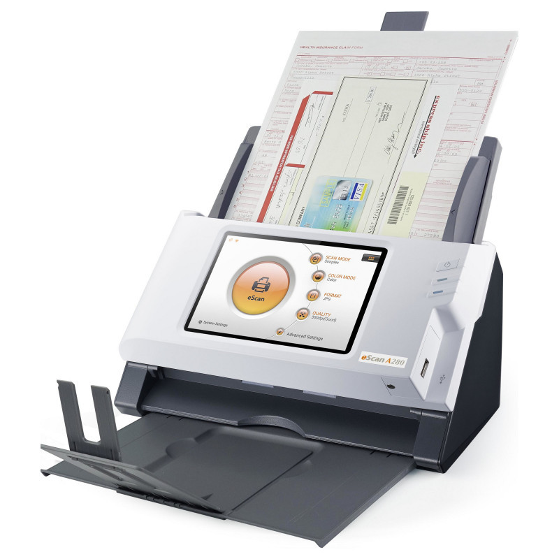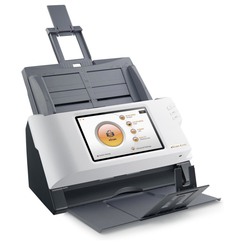"Plustek eScan A280 Essential. Maximum scan size: 216 x 356 mm, Optical scanning resolution: 600 x 600 DPI, Scan speed (b/w, low res, A4): 20 sec/page. Scanner type: ADF scanner, Product colour: Black, White, Display: LED. Sensor type: Dual CIS, Daily duty cycle (max): 2000 pages, Scan to: Cloud, E-mail, FTP, PC, SMB, USB. Auto document feeder (ADF) input capacity: 50 sheets. Maximum ISO A-series paper size: A4, Auto Document Feeder (ADF) media weight: 40 - 157 g/m², Maximum scan area (ADF): 216 x 356 mm"\n