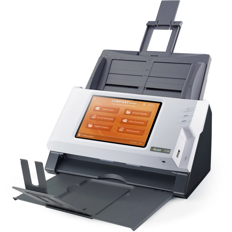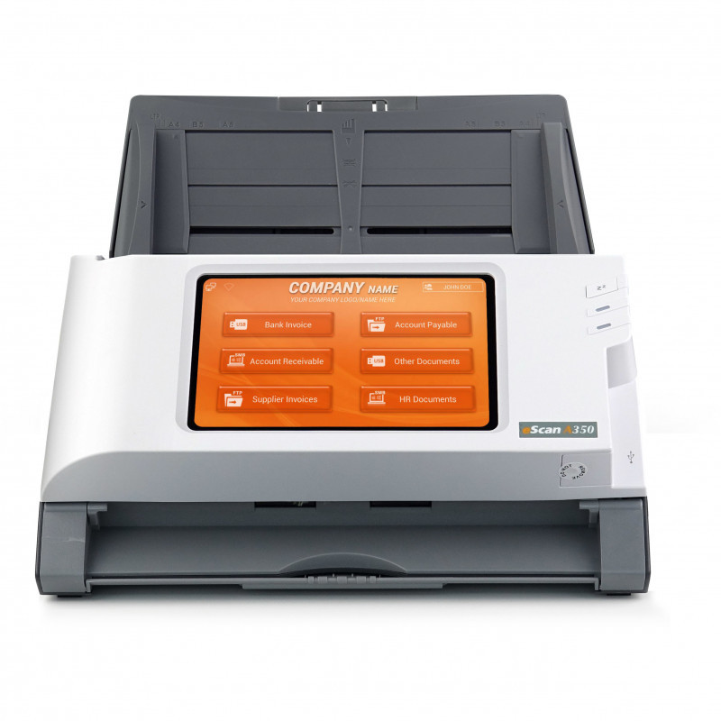 "Plustek eScan A350 Enterprise. Maximum scan size: 216 x 5080 mm, Optical scanning resolution: 600 x 600 DPI, Input colour depth: 48 bit. Scanner type: ADF + Manual feed scanner, Product colour: Black, White, Display: LED. Sensor type: Dual CIS, Daily duty cycle (max): 6000 pages, Scan to: E-mail, FTP, SMB, USB. Auto document feeder (ADF) input capacity: 50 sheets. Maximum ISO A-series paper size: A4, Auto Document Feeder (ADF) media weight: 40 - 157 g/m², Maximum scan area (ADF): 216 x 356 mm"\n"Standalone Network Scanner No PC required