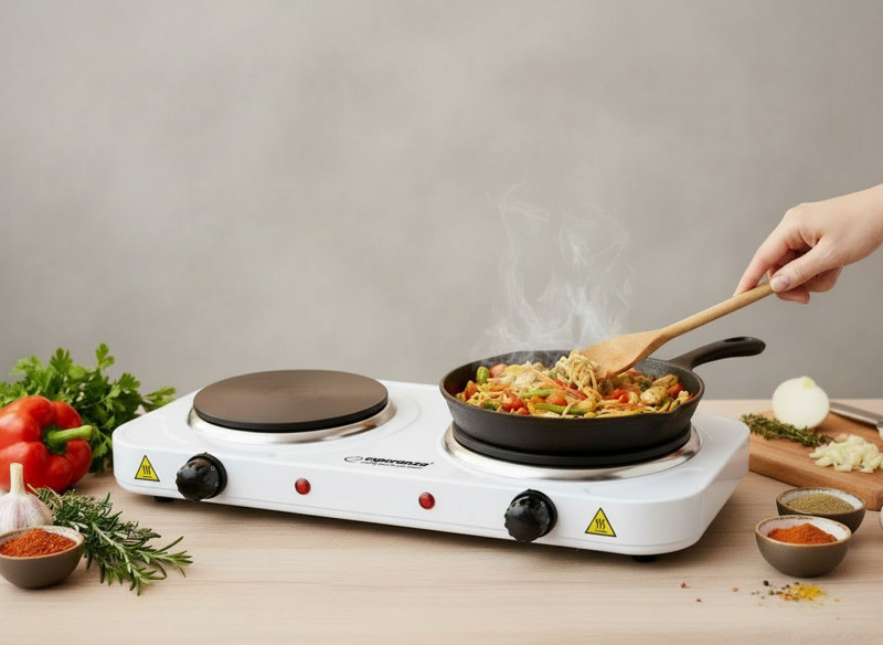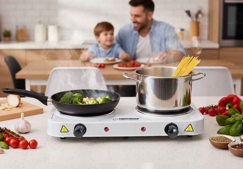 Esperanza EKH010W Reguliuojama elektrinė viryklė, 2 kaitinimo laukai, balta
