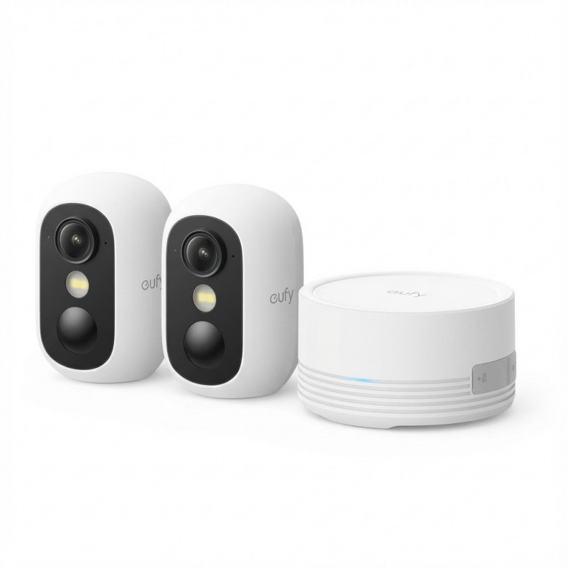 "Eufy Cam C35 2-Cam Kit. Type: IP security camera, Placement supported: Indoor & outdoor, Connectivity technology: Wireless. Mounting type: Ceiling/Wall/Desk, Product colour: White, International Protection (IP) code: IP67. Field of view (FOV) angle: 130°. Sensor type: CMOS, Optical sensor size: 25.4 / 2.9 mm (1 / 2.9""). LED type: IR"\n
