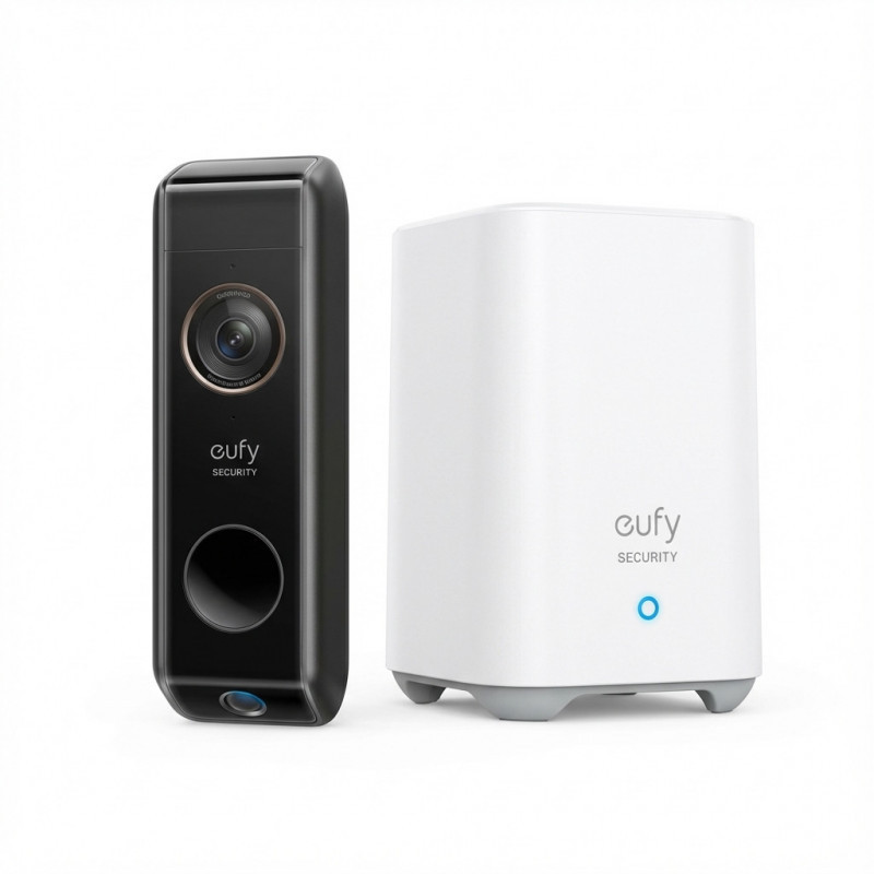 "Eufy T87A03W1. Product colour: White, Control type: Touch. Display type: LCD, Display diagonal: 20.3 cm (8""), Display resolution: 1280 x 800 pixels. Connectivity technology: Wired, Wi-Fi standards: Wi-Fi 6 (802.11ax), Wi-Fi frequency: 5 GHz. Input voltage: 100 - 240 V, Input frequency: 50/60 Hz, Battery technology: Lithium-Ion (Li-Ion). Width: 139 mm, Depth: 16.5 mm, Height: 201 mm"\n
