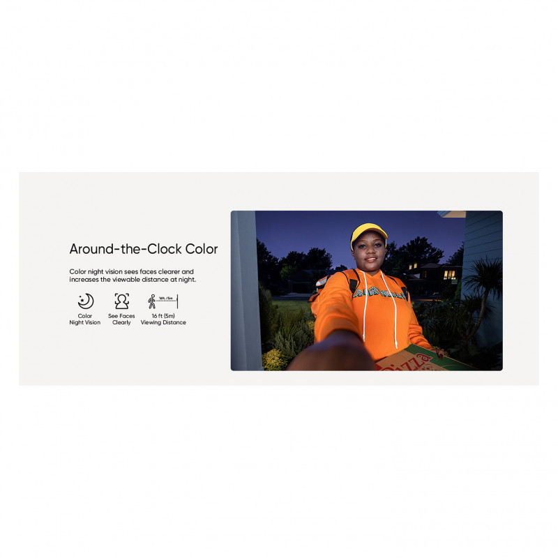 Motion-activated lights at both the top and bottom, combined with advanced image processing technology, gives you colour vision at night and a clear view of up to 5 metres for added nighttime security. Meanwhile, the smart chime keeps you notified from anywhere in your home, so you never miss a knock.