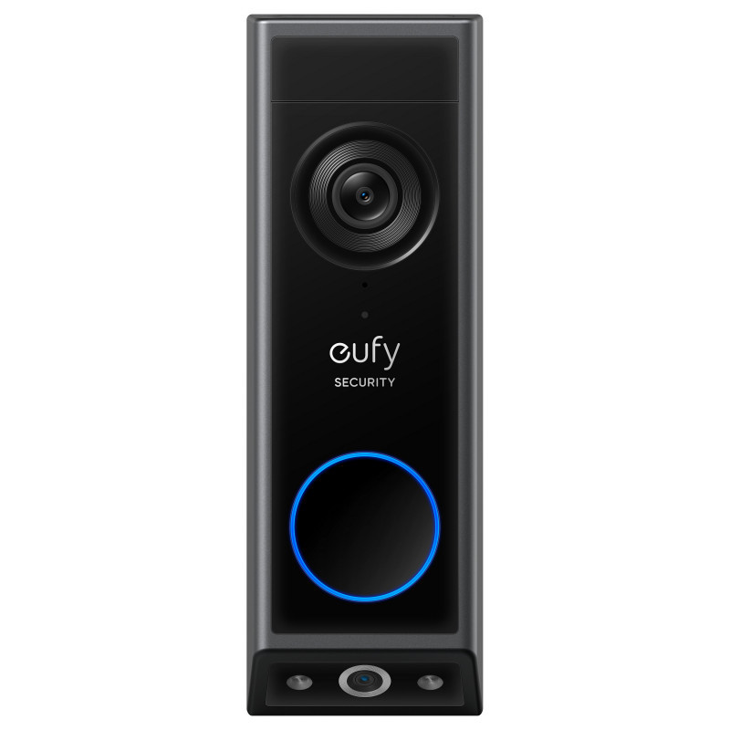 "Eufy E340 2K Dual Cameras Smart Video Doorbell with Chime. Type: IP security camera, Placement supported: Outdoor, Connectivity technology: Wireless. Mounting type: Wall, Product colour: Black, Form factor: Box. Field of view (FOV) angle: 160°. Supported video modes: 1080p, 1536p. HDD capacity: 8 GB"\n"Get crystal-clear 2K HD resolution with dual cameras for a complete view of your doorstep. The front-facing camera captures your visitors in sharp detail, while the downward-facing camera provides a clear view of the ground and packages, so nothing goes unseen.