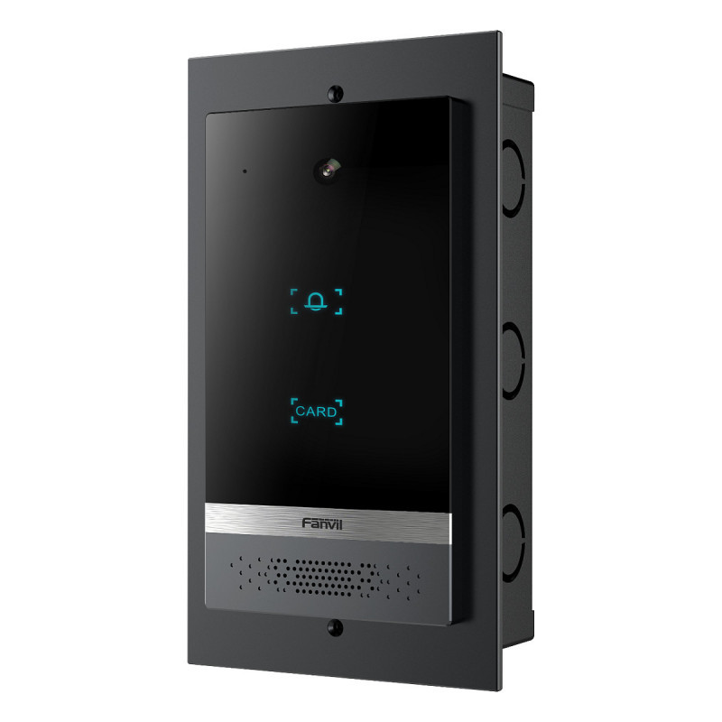 "Fanvil i61. Megapixel (approx.): 2 MP, Sensor type: CMOS, Optical sensor size: 25.4 / 2.9 mm (1 / 2.9""). LED type: IR. Speaker power: 2.5 W, Volume control: Buttons, Voice codecs: G.711a, G.711u, G.722, G.723.1, G.726-32, G.729A, G.729B. Product colour: Black, International Protection (IP) code: IP66, IK code: IK07. Compatible memory cards: MicroSD (TransFlash), Maximum memory card size: 128 GB"\n"Based on SIP and ONVIF protocols, i61 is a video door phone that integrates powerful functionalities of access control, intercom, and security protection. Featuring an aluminum alloy design and single speed-dial touch button, i61 delivers a high-quality luxury appearance. With high protection level IP66 and IK07, it is waterproof, dustproof and anti-collision in most outdoor environments. i61 allows users to make audio/video calls via a speed-dial button and a 2 Mega-pixel camera and achieve access control by different modes. With rich input and output interfaces, i61 is easy to link with other security devices and customize into various solutions in apartments, commercial buildings, communities and industrial parks."