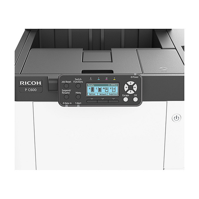 "Ricoh P C600. Print technology: Laser, Colour. Maximum duty cycle: 150000 pages per month. Maximum resolution: 1200 x 1200 DPI. Maximum ISO A-series paper size: A4. Print speed (black, normal quality, A4/US Letter): 42 ppm, Duplex printing. Display: LCD. Network ready. Product colour: Black, White"\n"Get messages out quickly