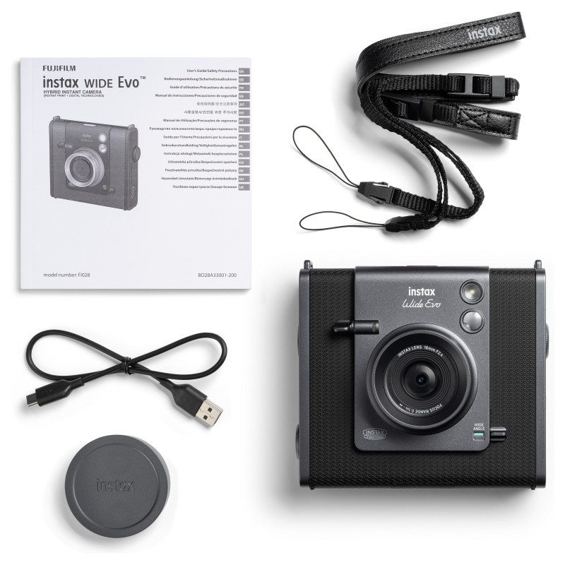 "Fujifilm Instax WIDE Evo Black EX D. Sensor type: CMOS, Product colour: Black. Fastest camera shutter speed: 1/4 s, Slowest camera shutter speed: 8000 s. Battery technology: Lithium-Ion (Li-Ion). Weight: 476 g, Height: 125 mm, Depth: 63 mm. Package width: 162 mm, Package depth: 100 mm, Package height: 189 mm"\n"make every shot a masterpiece™