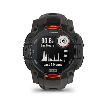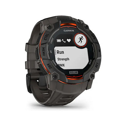 "Garmin Instinct 3 Solar. Display diagonal: 3.3 cm (1.3""), Display technology: MIP, Display resolution: 176 x 176 pixels, Touchscreen. RAM capacity: 128 MB. GPS (satellite). Weight: 58 g. Band material: Silicone, Band colour: Charcoal"\n"FEAR NOTHING