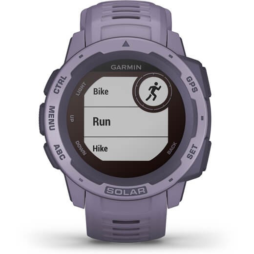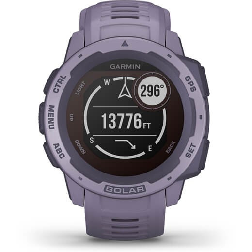 "Garmin Instinct Solar. Display technology: MIP, Display resolution: 128 x 128 pixels. RAM capacity: 16 MB. GPS (satellite). Weight: 53 g. Band material: Silicone, Band colour: Purple"\n"DO WHAT YOU LOVE, LONGER