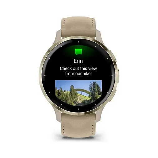 "Garmin 010-02785-55. Display diagonal: 3.05 cm (1.2""), Display technology: AMOLED, Display resolution: 390 x 390 pixels, Touchscreen. Wi-Fi. GPS (satellite). Weight: 40 g. Band material: Leather, Band colour: Gold"\n