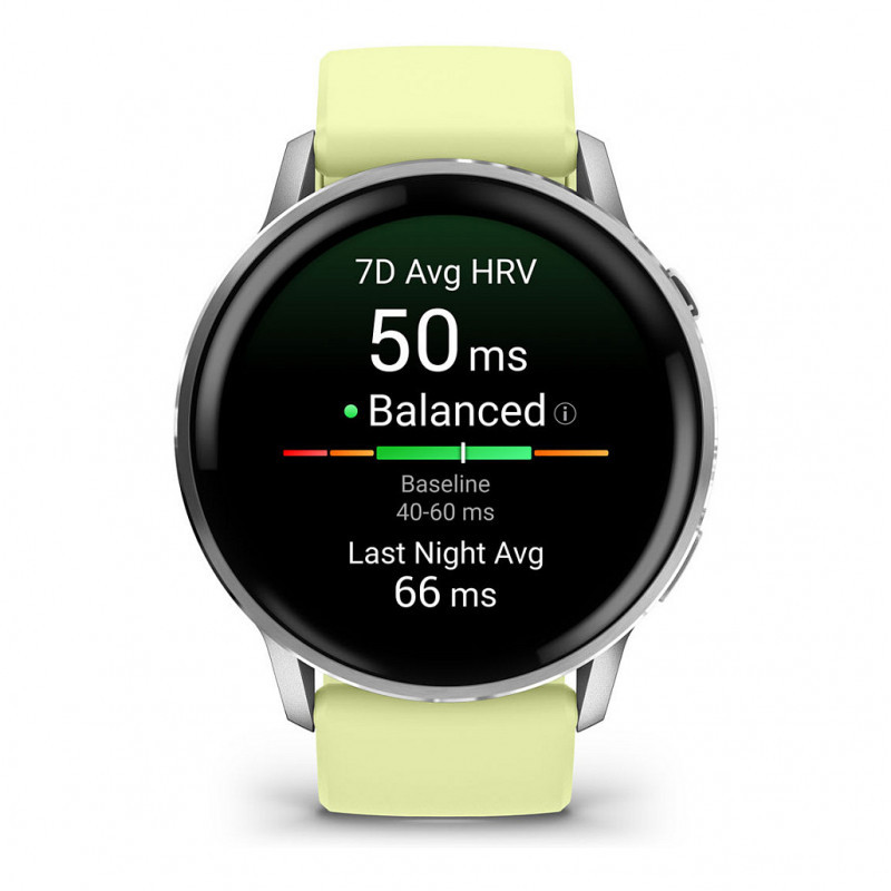 "Garmin Venu 010-03014-02. Display diagonal: 3.56 cm (1.4""), Display technology: AMOLED, Display resolution: 454 x 454 pixels, Touchscreen. Flash memory: 8 GB. Wi-Fi. GPS (satellite). Weight: 38 g. Band material: Silicone"\n"VENU 4