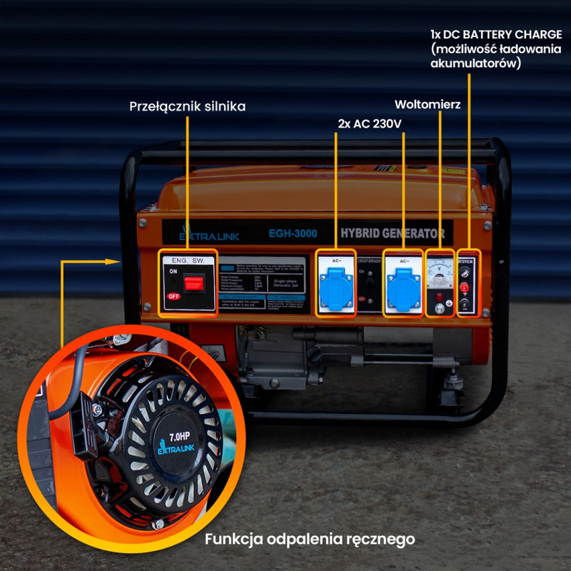 Extralink EX.30363 variklis-generatorius 2800 W 15 L Gamtinės dujos, Suskystintos benzino dujos (LPG), Benzinas Juoda, Oranžinė