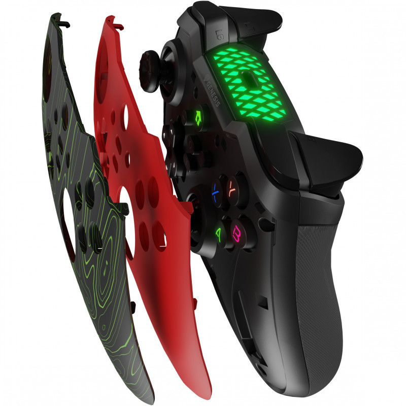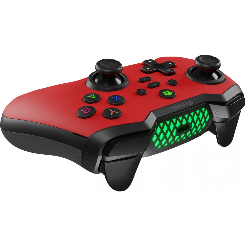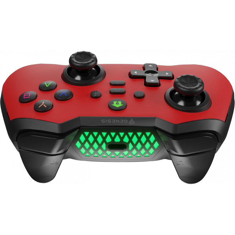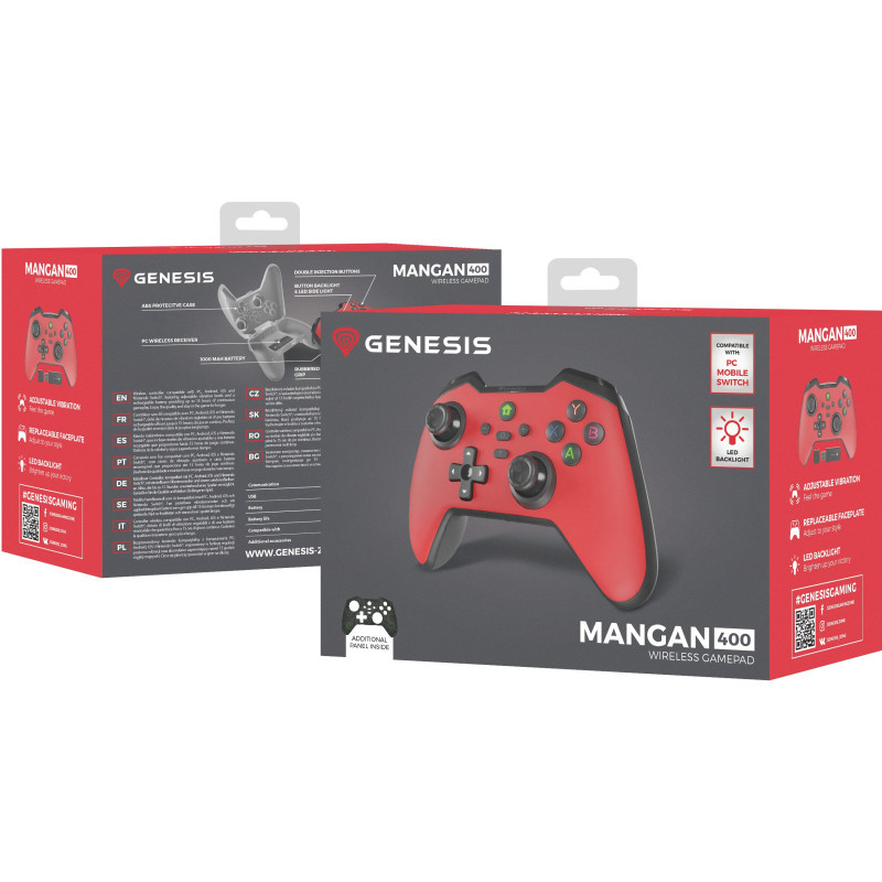 "GENESIS Mangan 400. Device type: Gamepad, Gaming platforms supported: Android, MAC, Nintendo Switch, PC, iOS, Gaming control function buttons: D-pad, Home button, Mode button, Select button, Start button, Turbo button. Connectivity technology: Wireless, Device interface: Bluetooth, USB connector type: USB Type-C. Product colour: Red. Power source: Battery, Battery type: Built-in, Battery technology: Lithium-Ion (Li-Ion). Windows operating systems supported: Windows 10, Windows 11, Windows 7, Windows 8, Mobile operating systems supported: Android"\n"PLAY WITH PRECISION AND IN A GOOD STYLE