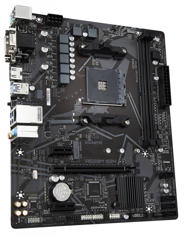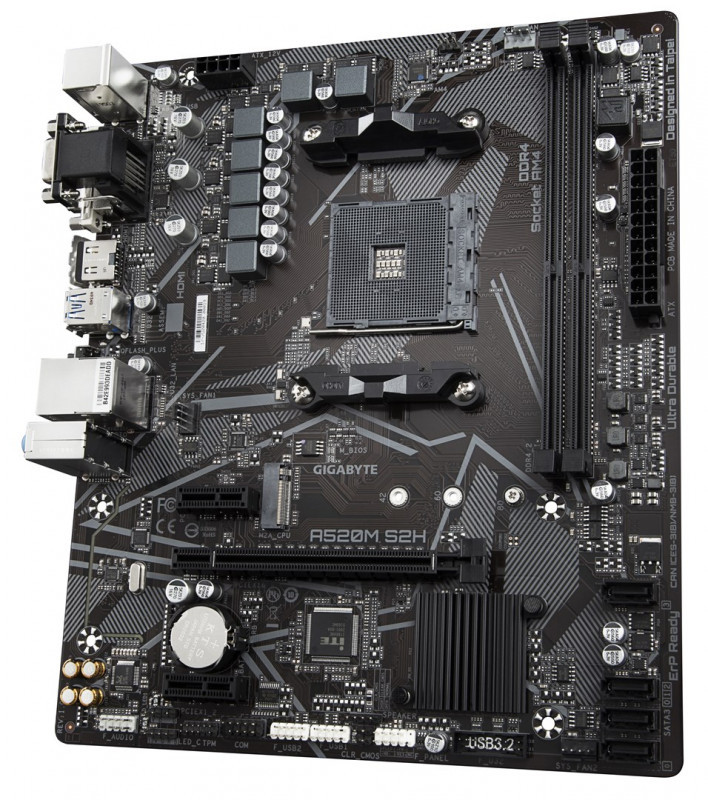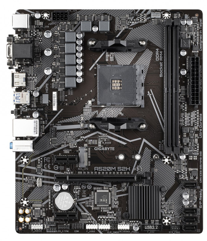 GIGABYTE A520M S2H Motherboard - Supports AMD Ryzen 5000 Series AM4 CPUs, 4+3 Phases Pure Digital VRM, up to 5100MHz DDR4 (OC), PCIe 3.0 x4 M.2, GbE LAN, USB 3.2 Gen 1