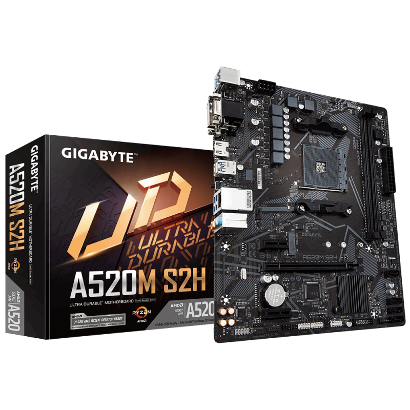 Gigabyte B550M DS3H R2 | Processor family AMD | Processor socket AM4 | DDR4 DIMM | Supported hard disk drive interfaces SATA, M.2 | Number of SATA connectors 4