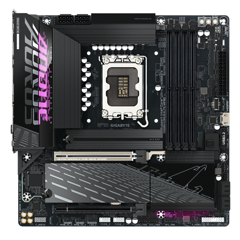 Pagrindinės Plokštės | Gigabyte B860M AORUS ELITE WIFI6E | Processor family Intel | Processor socket LGA1851 | DDR5 | Supported hard disk drive interfaces SATA, M.2 | Number of SATA connectors 4