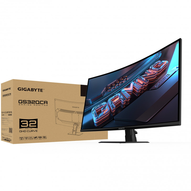 "GIGABYTE GS32QCA. Display diagonal: 80 cm (31.5""), Display resolution: 2560 x 1440 pixels, HD type: Quad HD, Display technology: LED, Response time: 1 ms, Native aspect ratio: 16:9, Viewing angle, horizontal: 178°, Viewing angle, vertical: 178°. VESA mounting. Product colour: Black"\n"As an unseen player, monitor is often being underestimated. The truth is monitors form as a synergistic effect and bring out the best performance of PC components. GIGABYTE gaming monitors offer the ultimate specifications and quality, users can truly enjoy upscale performance without the need for extravagance."