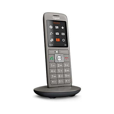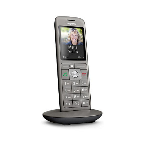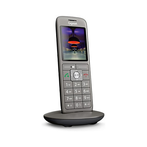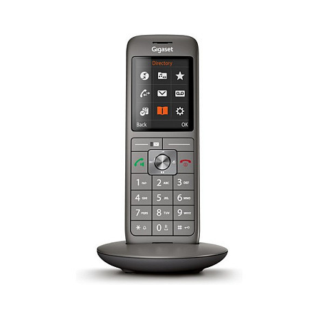 "Gigaset CL660HX. Type: Analog/DECT telephone, Handset type: Wireless handset. Speakerphone, Phonebook capacity: 400 entries. Caller ID. Display diagonal: 6.1 cm (2.4""). Short Message Service (SMS). Product colour: Anthracite. Number of handsets included: 1"\n"Distinctly beautiful – perfect for connection to the router.