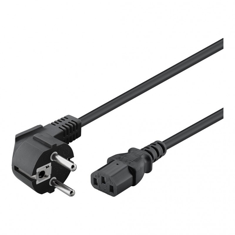 "Goobay Angled IEC Cord, 1.8 m, Black. Cable length: 1.8 m, Connector 1: Power plug type F, Connector 2: C13 coupler, Cable type: H05VV-F3G. Input voltage: 250 V"\n"Angled IEC Cord, 1.8 m, Black