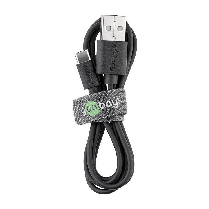 "Goobay 45735. Cable length: 1 m. Connector 1: USB A, Connector 2: USB C, USB version: USB 2.0, Maximum data transfer rate: 0.48 Gbit/s, Connector contacts plating: Nickel/Gold, Product colour: Black"\n"USB connection cables for power supply and data transfer support mobile phones, cameras, headphones, smartwatches, tablets and much more. The Goobay USB cable provides an interference-free connection and creates high-speed transfer rates. Documents as well as audio and video files can be transferred very quickly.