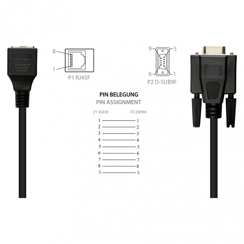 "Alcasa 4945-FF. Connector 1: RJ-45, Connector 2: RS232, Cable length: 0.1 m. Product colour: Black"\n