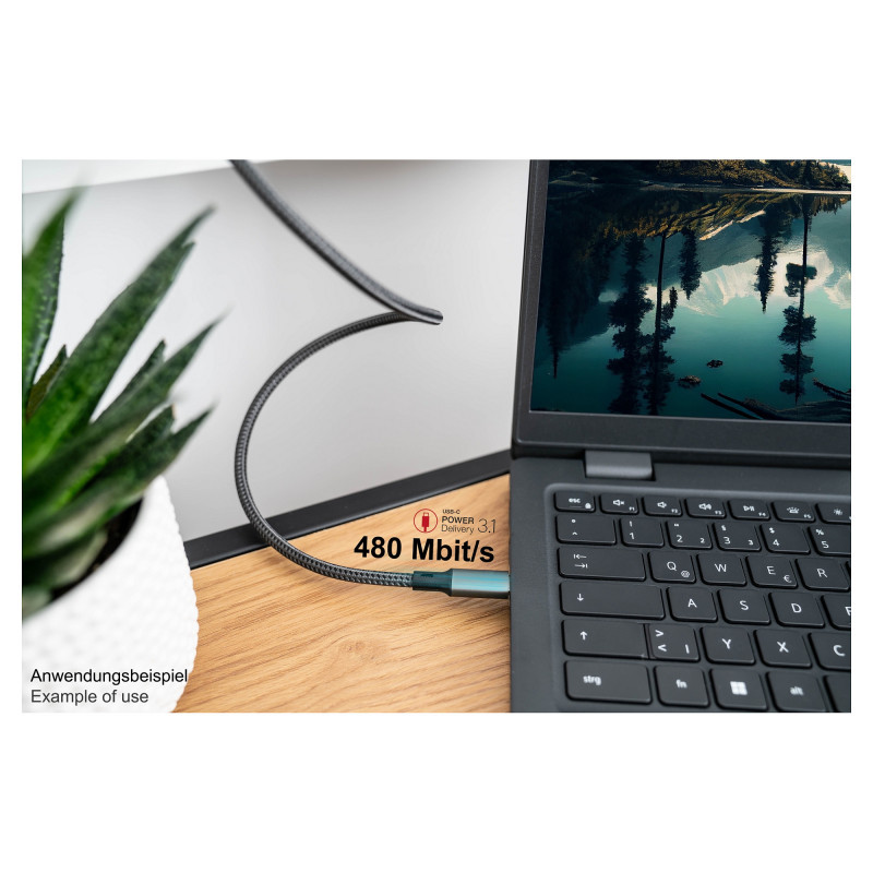 GoodConnections USB-C 2.0 (ST-ST) 2m Anschlusskabel Textilmantel 240W Anthrazit