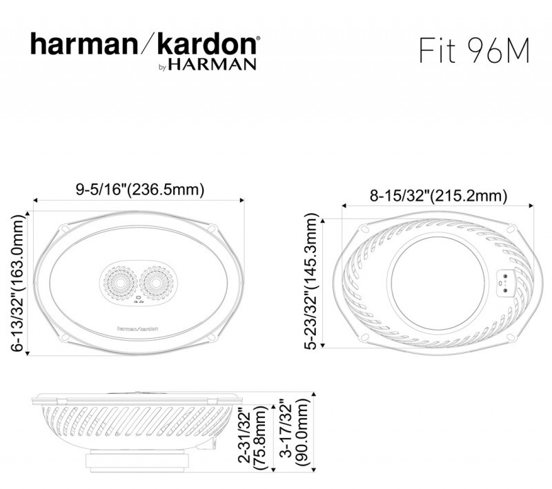 Harman Kardon FIT 96M – tai aukštos klasės 6x9" (152 x 230 mm) 3 juostų koaksialiniai automobiliniai garsiakalbiai iš FIT Series, sukurti užtikrinti itin detalų, galingą ir subalansuotą garsą automobilyje. Šis modelis pasižymi aukšta raiška, plačiu dažnių diapazonu ir efektyviu veikimu net su OEM sistemomis.