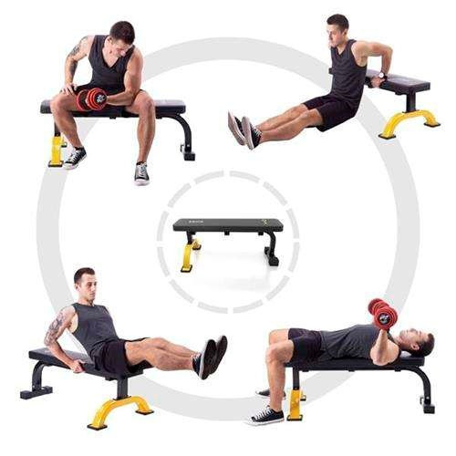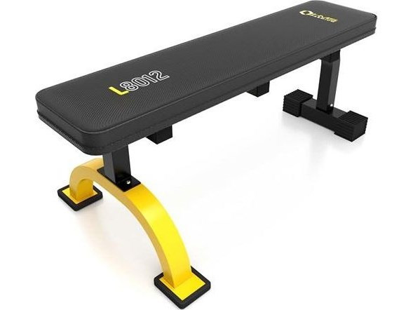 Treniruoklis HMS Fitness L8012 Plokščias suoliukas treniruotėms su svoriais Treniruoklių salė, Namo Juoda, Geltona