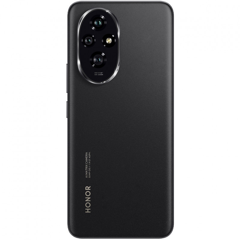 "Honor 200 5G. Display diagonal: 17 cm (6.7""), Display resolution: 2664 x 1200 pixels. Processor family: Qualcomm Snapdragon, Processor model: 7 Gen 3. RAM capacity: 12 GB, Internal storage capacity: 512 GB. Rear camera resolution (numeric): 50 MP, Rear camera type: Triple camera. SIM card capability: Dual SIM. Operating system installed: Android 14. Battery capacity: 5200 mAh. Product colour: Black. Weight: 187 g"\n"Elegant Design, Inspired by Nature.