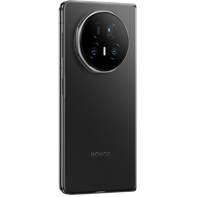 "Honor Magic V5. Display diagonal: 20.2 cm (7.95""), Display resolution: 2352 x 2172 pixels. Processor family: Qualcomm Snapdragon, Processor model: 8 Elite. RAM capacity: 16 GB, Internal storage capacity: 512 GB. Rear camera resolution (numeric): 50 MP, Rear camera type: Triple camera. SIM card capability: Dual SIM. Operating system installed: Android 15. Battery capacity: 5820 mAh. Product colour: Black. Weight: 222 g"\n"Redefining thinness, the symmetrical design pairs perfectly with an extra large display. Slim and lightweight, it fits comfortably in your hand.