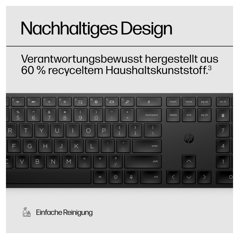 "HP 450 Programmable Wireless Keyboard. Keyboard form factor: Full-size (100%), Connectivity technology: Wired & Wireless, Device interface: RF Wireless + USB. Product colour: Black"\n"A Keyboard Without Compromise